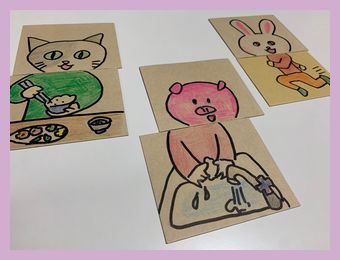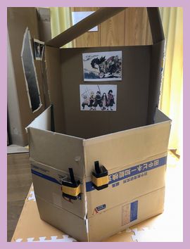 療育後のお菓子の時間にも、段ボールで作った自分の家の中で食べると大喜びのお子さんや、